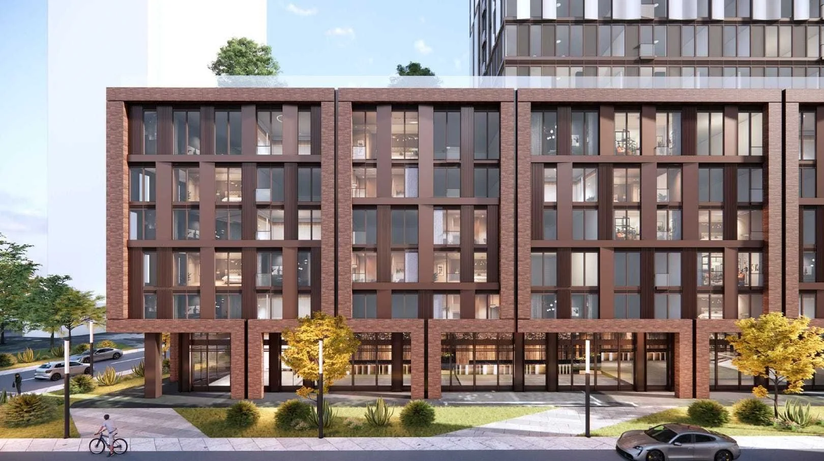Ground-level renderings of the proposal for 34-70 Montgomery Avenue. (Turner Fleischer, Graywood Developments)